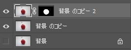 ②上側レイヤーの画像サムネイル(左側)が選択された状態で、