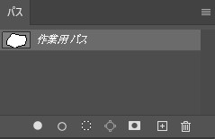 ①ペンツールのパスで範囲指定後、パスウインドウに「作業用パス」ができている。